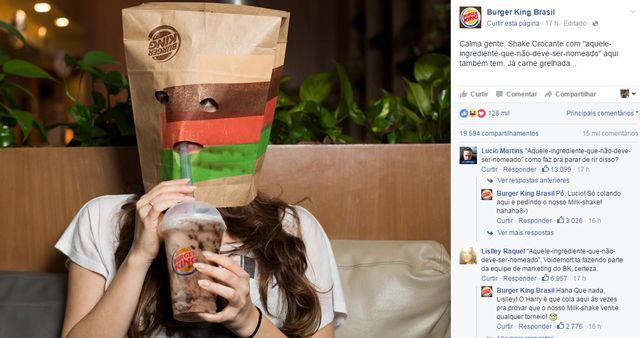 O Burger King afirmou que também tinha a bebida em seu cardápio. Em postagem, a rede postou uma foto com a legenda “Calma gente, Shake Crocante com 'aquele-ingrediente-que-não-deve-ser-nomeado' aqui também tem”.