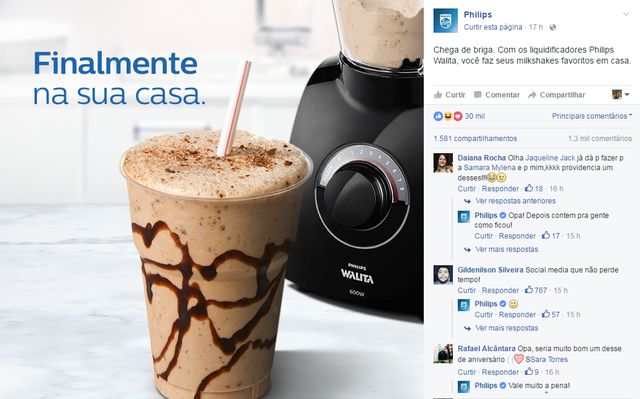 Até mesmo quem não era do ramo deu um jeito de aparecer. A Philips publicou em sua página do Facebook uma foto da bebida, lembrando que é possível fazer o milk-shake em casa com os liquidificadores da marca. A foto vinha acompanhada da legenda “Chega de briga. Com os liquidificadores Philips Walita, você faz seus milkshakes favoritos em casa.”